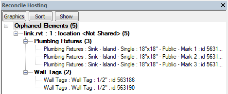 - To rehost an orphaned element, select the element in the Reconcile Hosting browser, right-click, and click Pick Host. Then in the drawing area, select the new host.