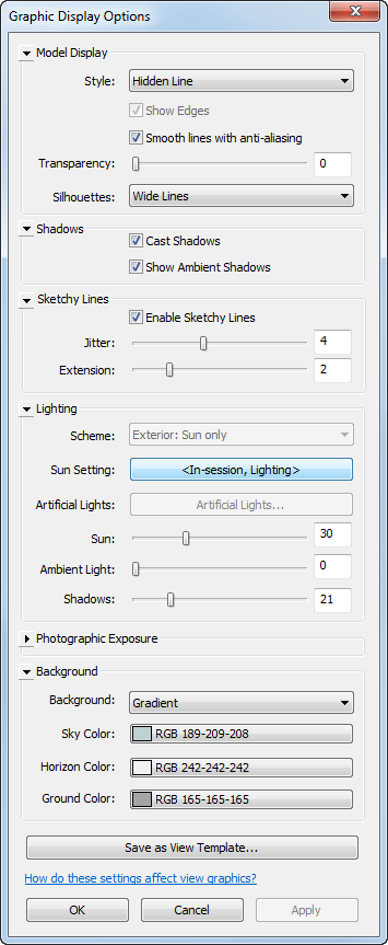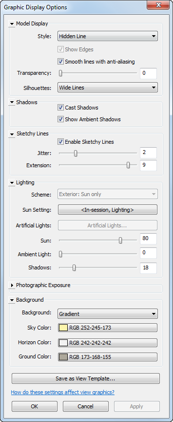 This view uses the following settings on the Graphic Display Options dialog: