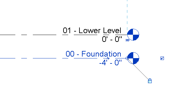 - In the drawing area, click the value for 00 - Foundation, enter -4', and press Enter to change the elevation of the level.