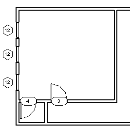 - Select the interior wall that contains the doors; position the cursor over the wall, and when you see the move icon