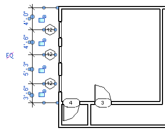- Use the Aligned dimension tool to reposition windows to be equidistant from each other.