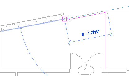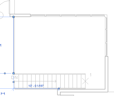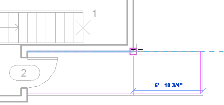 - Position the cursor over the edge of the floor on the left at the top of the stairs, and when the dashed line displays to the left, click to place the railing.