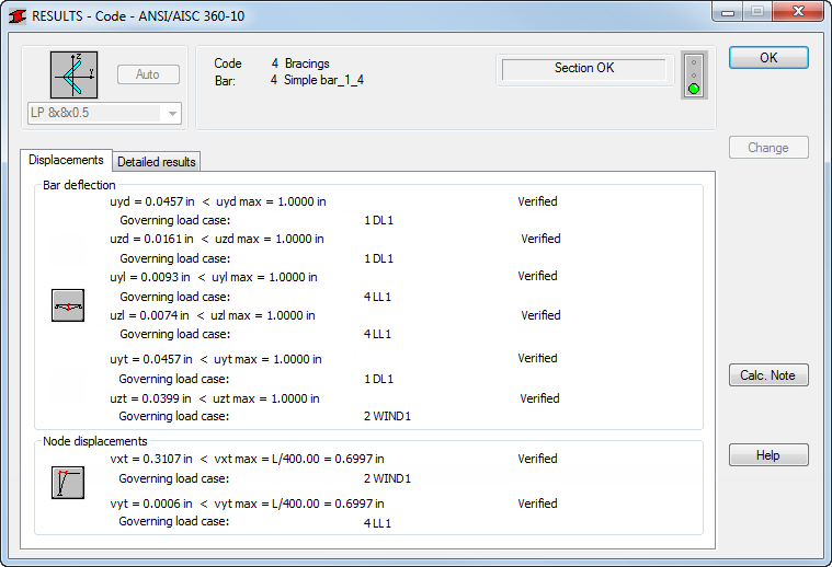 Note: The Member Type for Bracings does not determine limit values for deflections. The next step explains how to set these parameters in order to perform the verification as required.