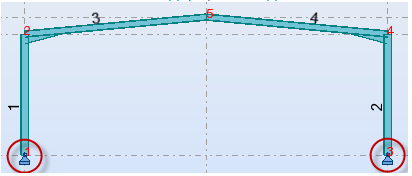 In the Supports dialog box, verify that the pinned option is still selected and click the nodes at the bottom of the structure to apply a pinned support to them as shown below.