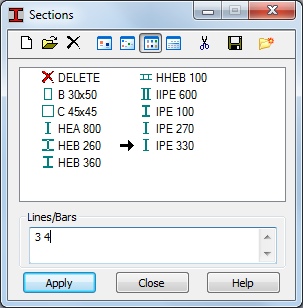 You will now make them stronger in two ways. First you will set the material for a section to a higher steel grade and then you will change the size of the section used by the roof beams.