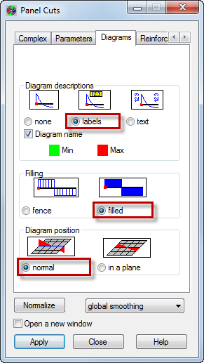 The new window opens and displays the map of displacements for the panel as shown below.