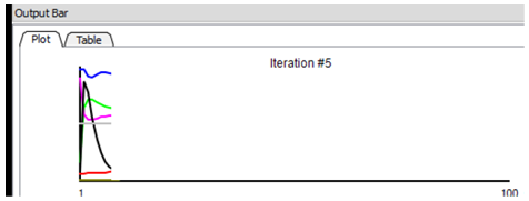 4. When startup processing is complete and the analysis has started, the solution progress is plotted on the Output Bar of the Convergence Monitor: