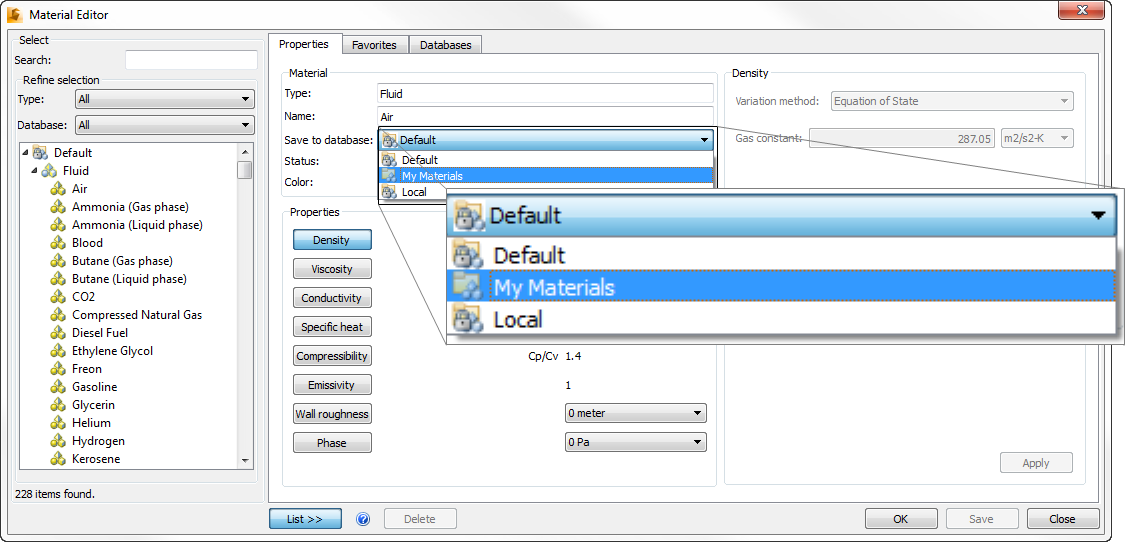 Materials are physical substances, and are the foundation of the Autodesk Simulation CFD analysis. There are two distinct material types available in an analysis: fluids and solids.