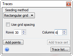 18. In the Traces dialog, select Rectangular grid as the Seeding method. Set Rows to 30 and Columns to 6. Click Add points.