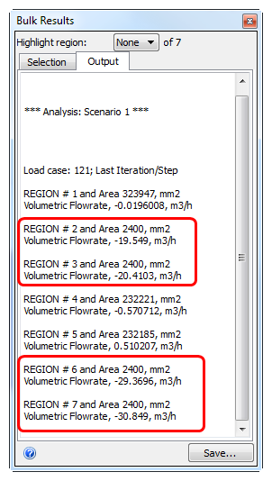 28. Compare the flow balance between the two four registers: Select Bulk from the Planes context panel. Select Volume Flow. Click on the adjacent units field, and select m3/h.