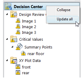 2. To update all summary items, right click on the Decision Center bar, and click Update all.