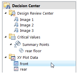 3. To plot temperature for the front and rear occupants, click on each XY plot in the Decision Center: