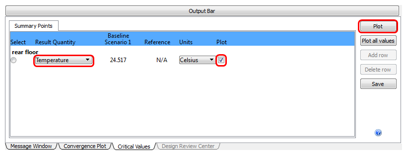 6. In the Critical Values tab of the Output Bar, select Static Temperature. Check the Plot box and click the Plot button: