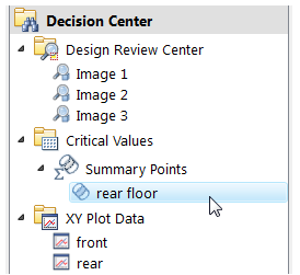 5. Left click on the "rear floor" summary point in the Decision Center: