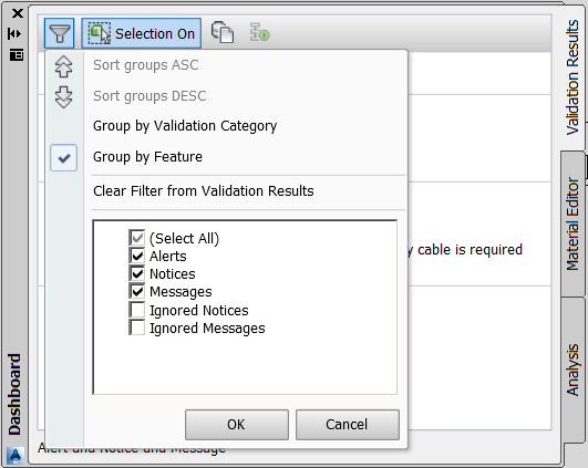 These checkboxes also control the type of validations displayed in the drawing when Show Validations is selected.