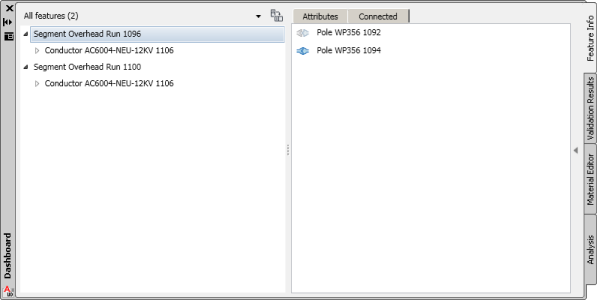 - In the Feature Info palette, select a feature of interest in the feature list and click Connected.
