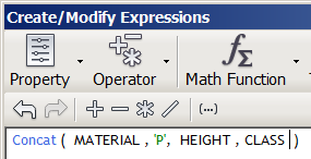 For example, to map Material, Height, and Class attributes in the source to the Model Name attribute in the design drawing, you might create an expression like the following: