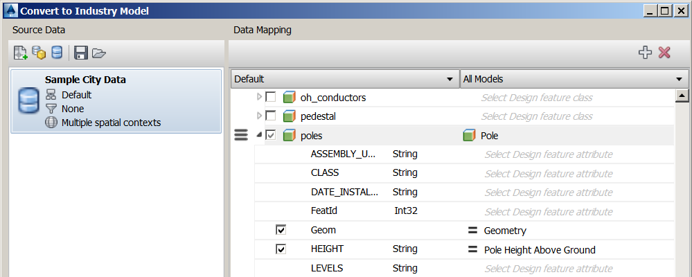 - In the Convert to Industry Model dialog box, under Source Data, click any of the following: