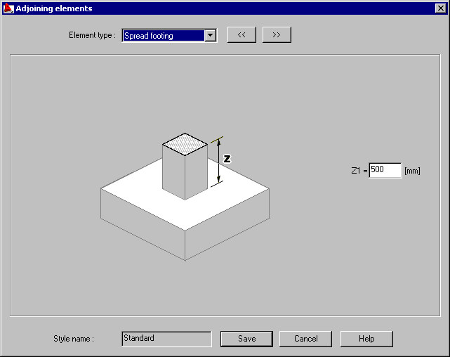 In the Adjoining elements dialog, specify dimensions that form the surroundings of a selected element type.