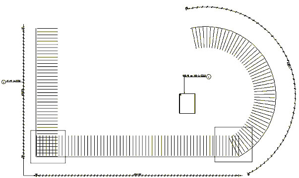 Linear distribution can be specified along a defined / selected broken line (polyline). Distributed reinforcing bars are placed perpendicular to the distribution line.