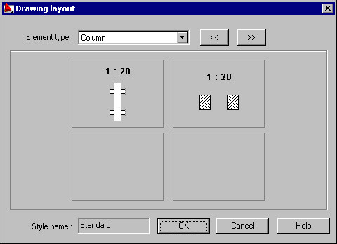 If an empty icon displays for a selected drawing layout and a selected structure element type, the field does not contain a drawing.