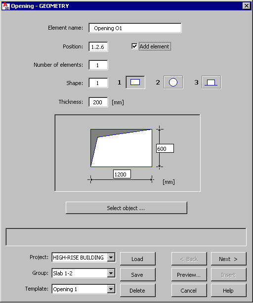 - Opening shape; the following shapes of an RC slab's opening are available (the number is entered into the Shape edit field):