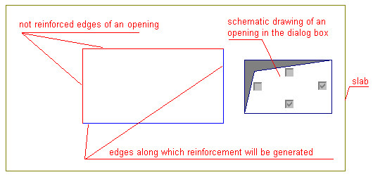 For a rectangle-shaped opening, selected edges which will not be reinforced (type 3), do the following: