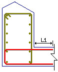 For every type of parapet reinforcement, a value of parameter L1 (as shown below) can be determined. Reinforcement length depends on the reinforcement diameter.