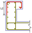 For some reinforcement types the L2 edit field is also available. Reinforcement length in the top part of a parapet depends on the reinforcement diameter. L2 length displays in the drawing below.