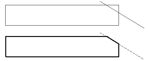 Cut the profile by specifying positions of two points that define a line. Additionally, a direction is indicated (a point on one side of the cutting line): it determines the object part that will be cut.
