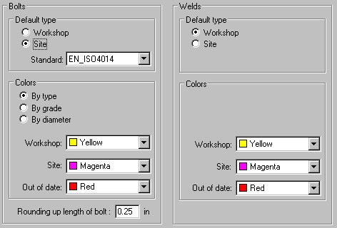 - For Default type, select a default weld/bolt type (workshop or site)