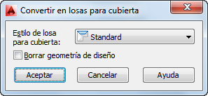 . La hoja de trabajo Convertir en losas para cubierta muestra los estilos de losas para cubierta presentes en el dibujo activo.
