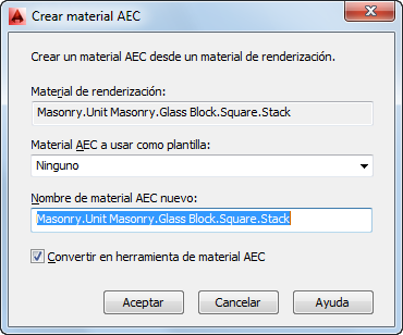 - Verifique que la opción Convertir en herramienta de material AEC esté seleccionada.