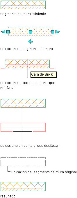 Utilice este procedimiento para mover muros desfasándolos desde el centro o el lado de uno de sus componentes hasta el punto o distancia que especifique.