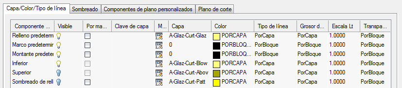 a una altura inferior al valor de Altura del plano de corte | los objetos se muestran con las propiedades especificadas para el componente Por debajo de plano de corte en la ficha Capa/Color/Tipo de línea. |