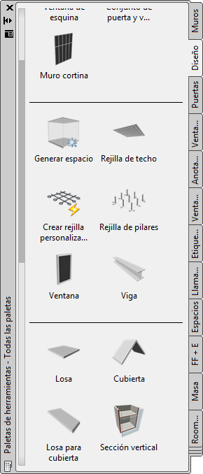 Las paletas personalizadas creadas por el administrador de CAD u otros usuarios también puede contener herramientas de rejilla de pilares estructurales con propiedades personalizadas para los proyectos o normas de su oficina.