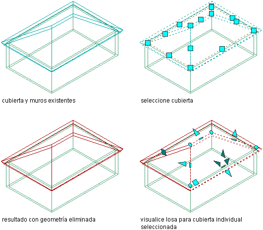 Utilice este procedimiento para convertir las superficies de una cubierta en losas para cubierta individuales que tengan las propiedades especificadas en la herramienta de losa para cubierta seleccionada. Después, puede modificar cada una de las losas para cubierta y sus bordes.