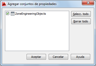 - En el cuadro de diálogo Agregar conjuntos de propiedades, seleccione ZoneEngineeringObjects y pulse Aceptar.