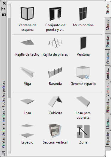Las paletas personalizadas creadas por el administrador de CAD o por otros usuarios pueden contener también herramientas de cubierta con propiedades personalizadas según las normas de una empresa o proyecto.