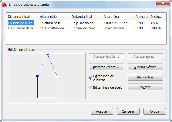 La tabla de la parte superior del cuadro de diálogo muestra información sobre todos los vértices del muro cortina. También puede seleccionar el vértice que desea editar en la lista.