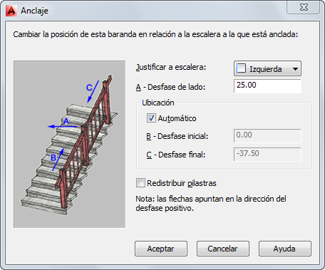 - Un valor cero coloca las pilastras inicial y final exactamente en los extremos de la escalera.