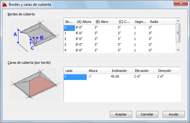 | modificar la altura de un borde de cubierta | seleccione el parámetro Altura del borde de cubierta y escriba un valor. |