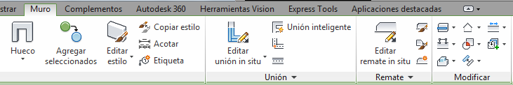 • En la ficha contextual del objeto de la cinta de opciones, seleccione el comando Editar in situ. El grupo donde se ubica el comando de edición in situ depende del objeto. Asimismo, algunos objetos como muros o muros cortina pueden tener varios componentes basados en perfiles. En este caso, seleccione primero el grupo correspondiente al componente y, a continuación, el comando de edición in situ asociado.