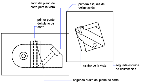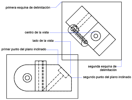 Dos puntos definen el plano inclinado utilizado para la proyección auxiliar. Ambos puntos se deben ubicar en la misma ventana gráfica.