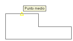 Siempre que se solicite un punto, se puede especificar una referencia a objetos. Por defecto, se muestran un marcador y una información de herramientas al desplazar el cursor sobre una ubicación de referencia a objeto situada en un objeto. Esta característica, denominada AutoSnap ™ , proporciona una confirmación visual que indica qué referencia a objeto está activa. Por ejemplo, la marca para una referencia a objeto de punto medio es un triángulo.
