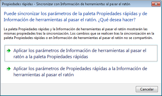 Al colocar el ratón sobre un objeto del tipo seleccionado en la ventana de dibujo, las propiedades marcadas se muestran en la información de herramientas al pasar el ratón. Desactive la marca de verificación adyacente a una propiedad para eliminarla del tipo de objeto seleccionado.