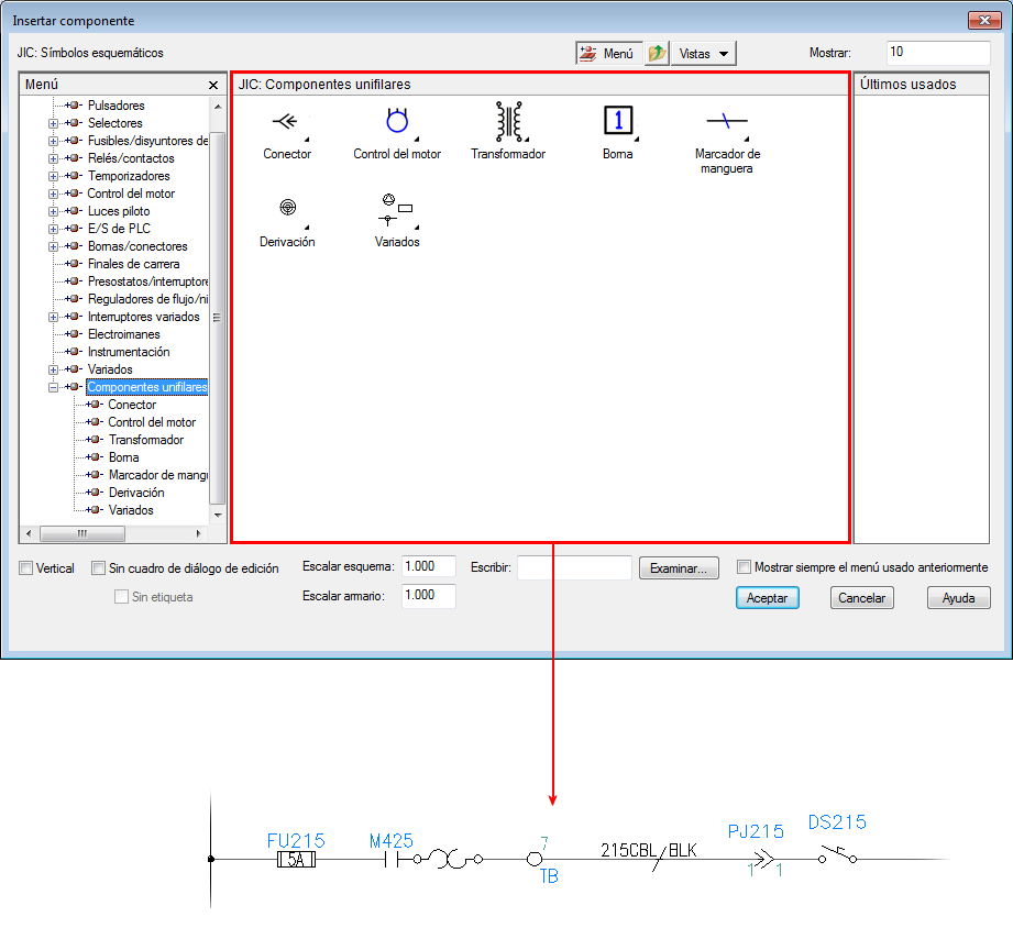 Los símbolos unifilares siguen la misma convención para los nombres que los símbolos principales y secundarios del esquema. Para hacer únicos los nombres de símbolo, los nombres de bloque de símbolos unifilares incluyen un sufijo “1-”. Sin embargo, el nombre del símbolo no define a éste como un símbolo unifilar. El símbolo unifilar se define por la existencia de un atributo TIPOWD con un valor “1-” en el símbolo, o bien un valor “1-1” si se trata de un símbolo de derivación unifilar.