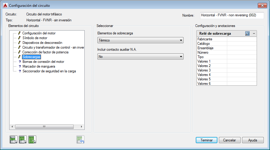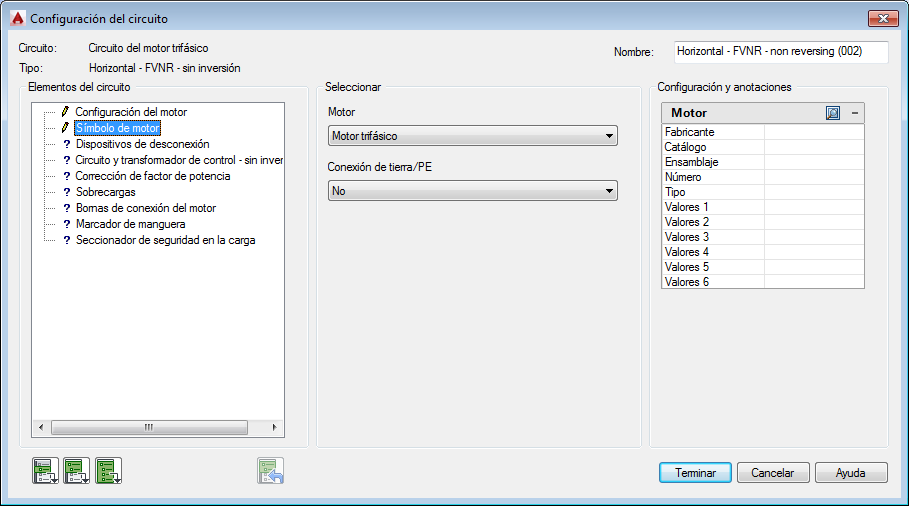 Utilice el Generador de circuitos para insertar y configurar un circuito de motor trifásico.