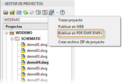 Utilice el botón Publicar/trazar en el Gestor de proyectos para imprimir el proyecto.