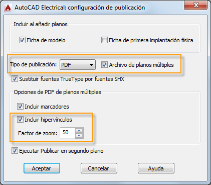 Asegúrese de seleccionar Archivo de planos múltiples e Incluir hipervínculos.